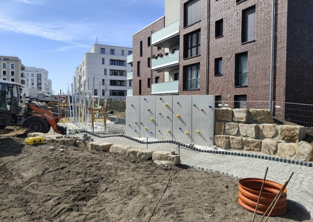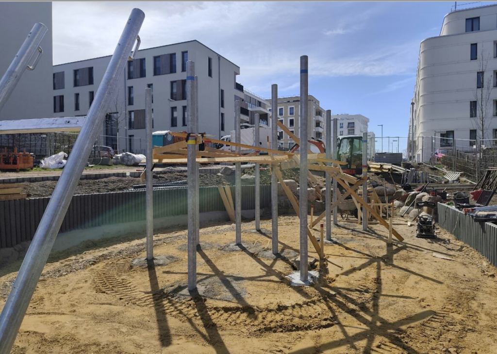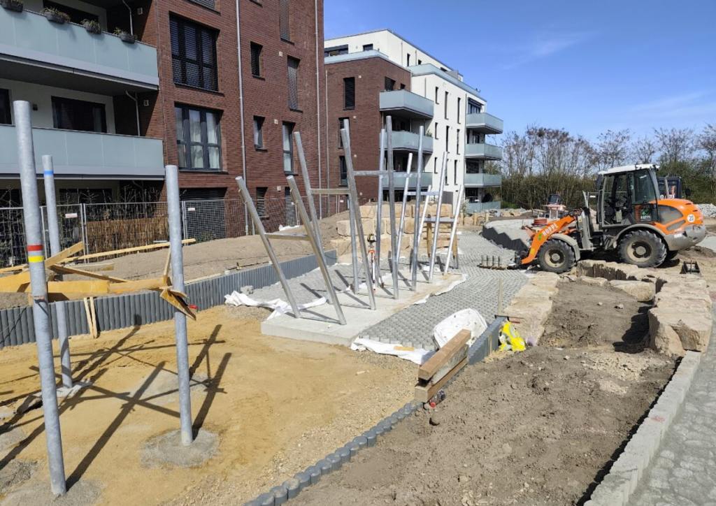 Derzeit liegen die Arbeiten weitgehend im vorgesehenen Zeitplan. Nach Abschluss der Fundamentarbeiten stehen nun die Montage der Spielgeräte sowie die Herstellung und zeitnahe Bepflanzung der umliegenden Flächen im Fokus. Der Kletterspielplatz soll Kindern im Quartier verschiedene Bewegungs- und Spielmöglichkeiten bieten und ergänzt die bereits vorhandenen Freizeitangebote im Umfeld.